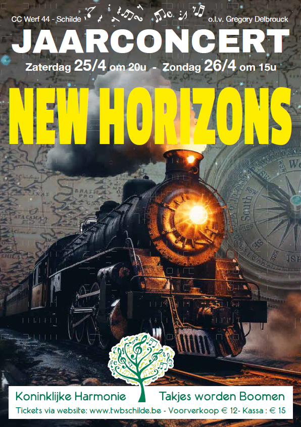 Met trots nodigt de Koninklijke Harmonie Takjes Worden Boomen Schilde u uit op haar Jaarconcert 2026: New Horizons, het eerste concert onder …