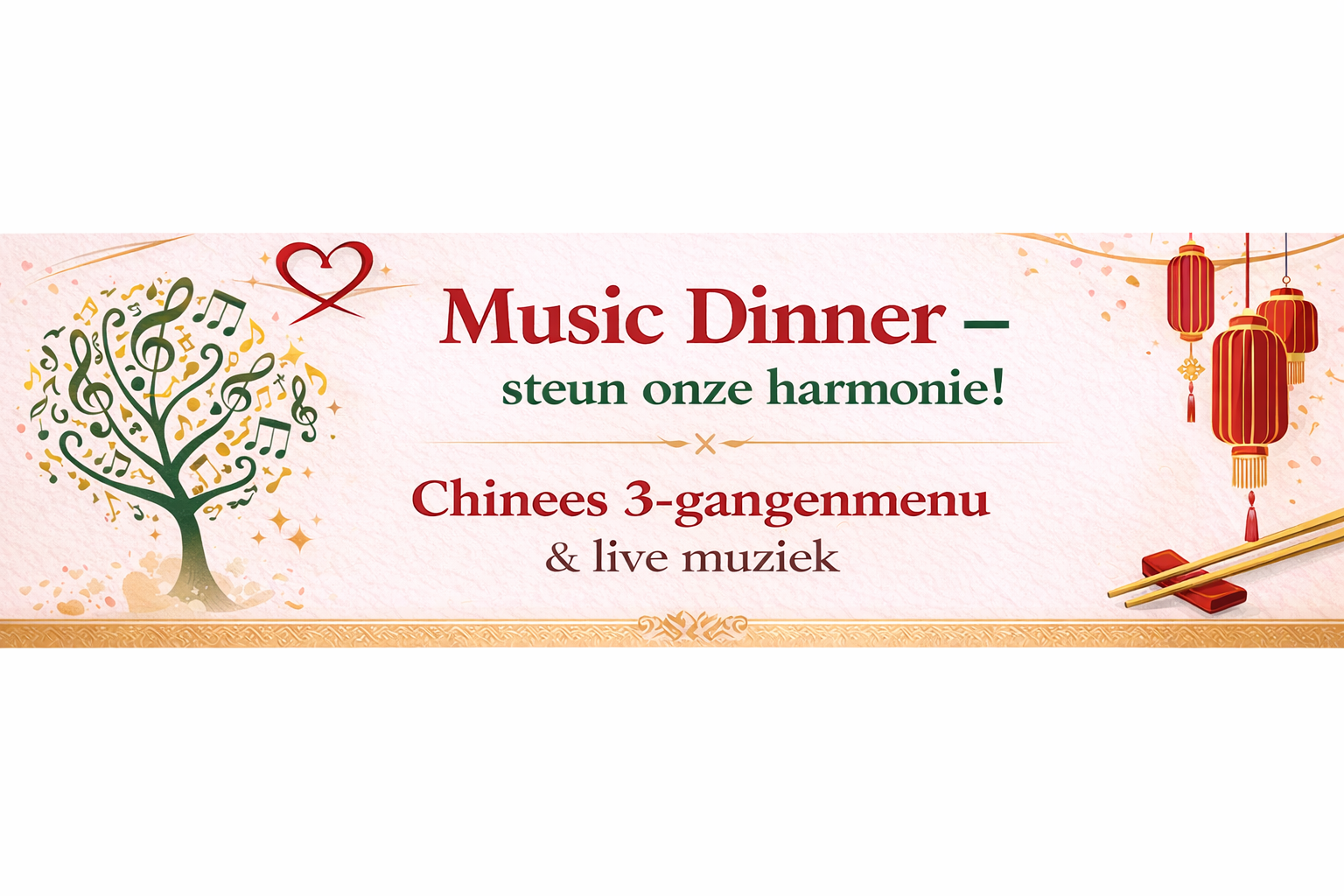 Op zondag 15 februari 2026 organiseert TWB Schilde een sfeervol Music Dinner in De Wip (Schilde).Geniet van een heerlijk Chinees 3-gangenmenu, begeleid door live muziek, en steun tegelijk onze harmonie.